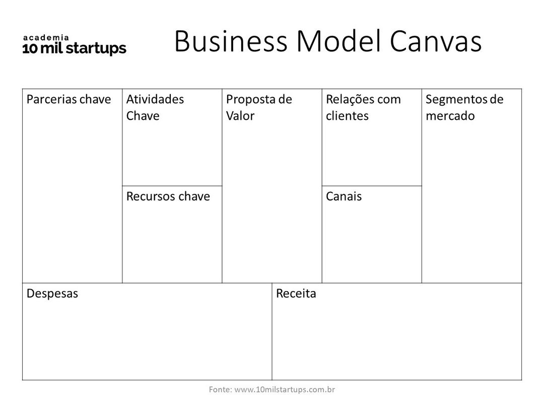 Esse é o Business Model Canvas. Por meio dele é possível estruturar e analisar o modelo de negócio de uma empresa ou startup. Por seu formato visual ele possibilita que o time tenha insights sobre o modelo de negócios e possa fazer melhorias.